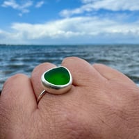 A beautiful large sterling silver dark green colour sea glass ring. One ready made in size U with a plain polished silver band, or you can order one to be made in your size with your preference of band.