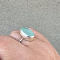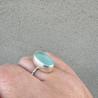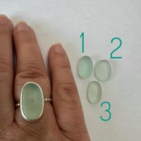 One available to buy now as photographed in size N with a dotty silver band. The seaglass measures approx 1.7cm x 1cm. It's a beautiful statement piece!