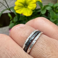The stacking rings have a hammered texture, which looks a little like raw silk. They are handmade by me in my Edinburgh studio from ethical, recycled silver.