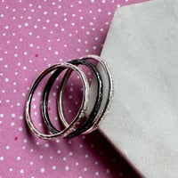 Pretty skinny sterling silver stacking rings which look great worn individually, even better stacked up with contrasting finishes.